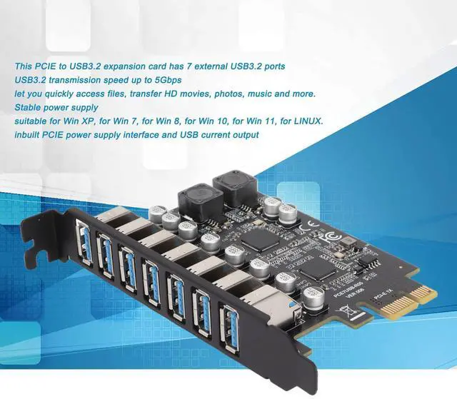 7 Ports PCIE to USB 3.2 GEN1 Expansion Card, USB 3.2 GEN1 Superspeed 5Gbps Front Expansion Card, USB PCIE Expansion Card for 8 10 11 Linux