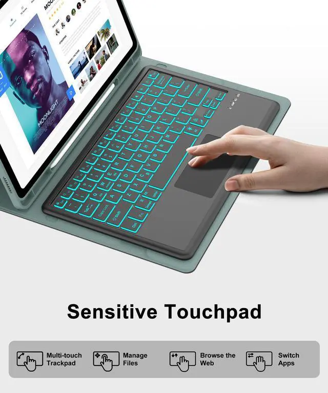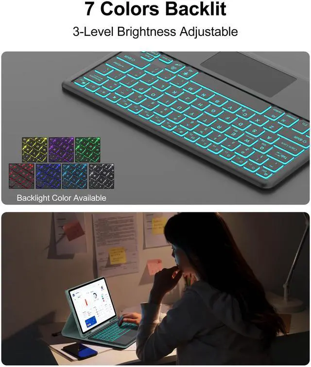 360 Protection for TabletFor samsung tablet keyboard case features a sturdy high-quality PU shell and soft anti slip rubber lining inside, providing comprehensive protection for your tablet.