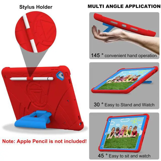 Two Angle View Bracket + Multifunction Shoulder Strap: Easy to open and close the stand. Provides multiple standing positions when viewing or typing. 10.2 inch ipad case 9th generation with adjustable shoulder strap will allow you to display your iPad behind car head rest or hang it anywhere for your better entertainment, make your hands free. Perfect for traveling, outdoor activ