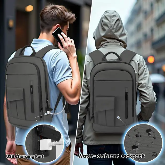 Business Backpack for Men Slim Lightweight Laptop Backpack Water Resistant Small Office Backpack for Commute Travel Daily Office Work with Small Bag (Grey)