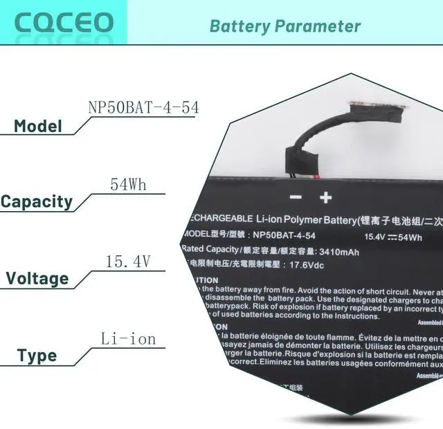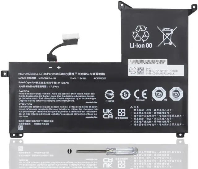 NP50BAT-4-54 6-87-NPSKS-53G00 Laptop Battery for Clevo NP70 X17 AT22 G7 KE XMG Focus 16 X15 at 4ICP7/60/57 15.4V /54Wh/3510mAh/4Cell