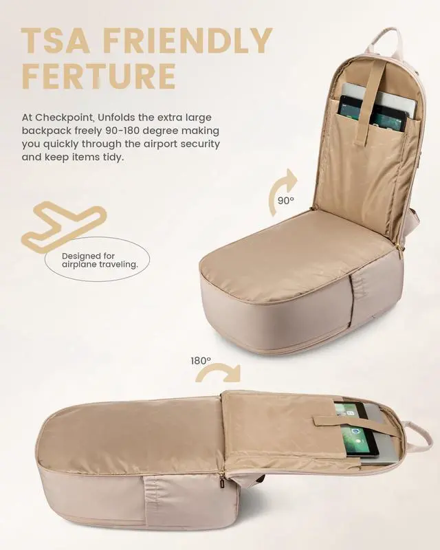 Laptop Protection&180° Wide OpenThe backpack features a specialized 180° wide-opening laptop compartment for easy access to your computer and convenient screening. The thick, padded interior provides extra protection to ensure your device is always safe and stable.