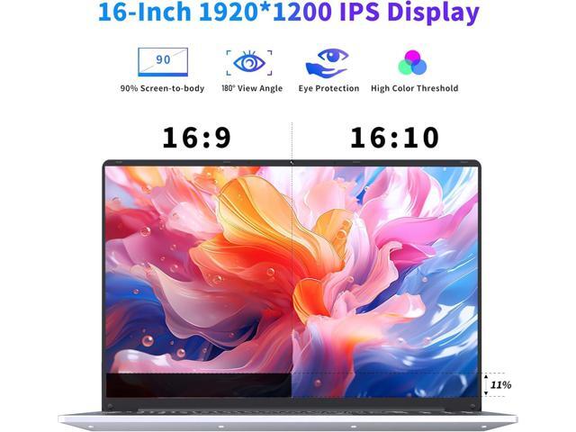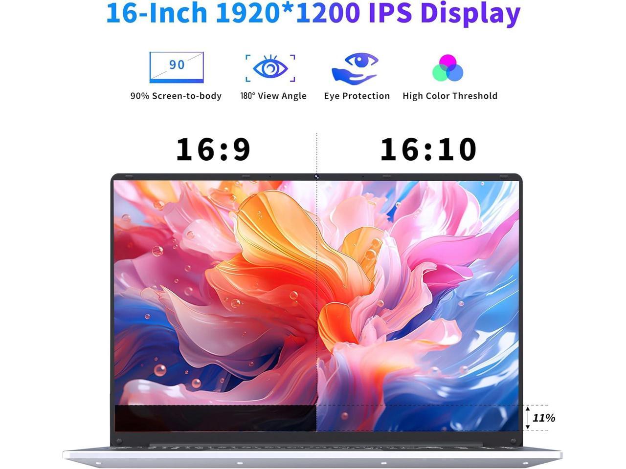- VIBRANT 16-INCH DISPLAYEnjoy a visually stunning experience with the 16" Full HD display, 1920*1200 resolution ratio, IPS-Screen, low blue light technology. With screen-to-body ratio up to 90%, our laptop has an aspect ratio of 16:10, offering BETTER viewing experiences.