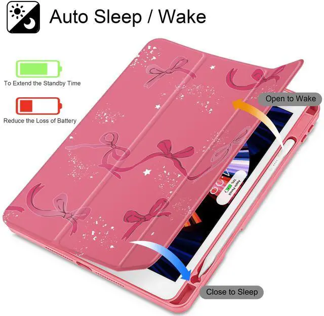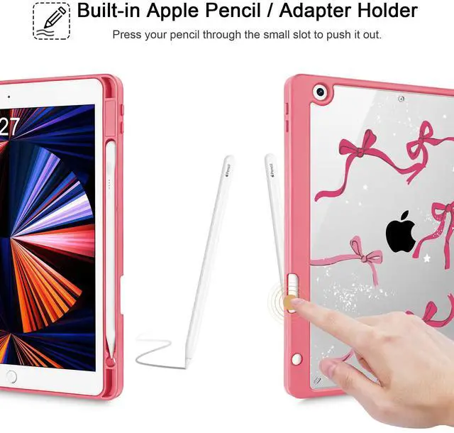 Tuiklol for iPad 10.2 case 2021 Gen 9th Release Built in Pencil Holder - Trifold Stand-Auto Wake/Sleep TPU Protection Stand Clear Back Cover for 2020 2019 [8th/7th] iPad 10.2 Case,Bow-Watermelon Red