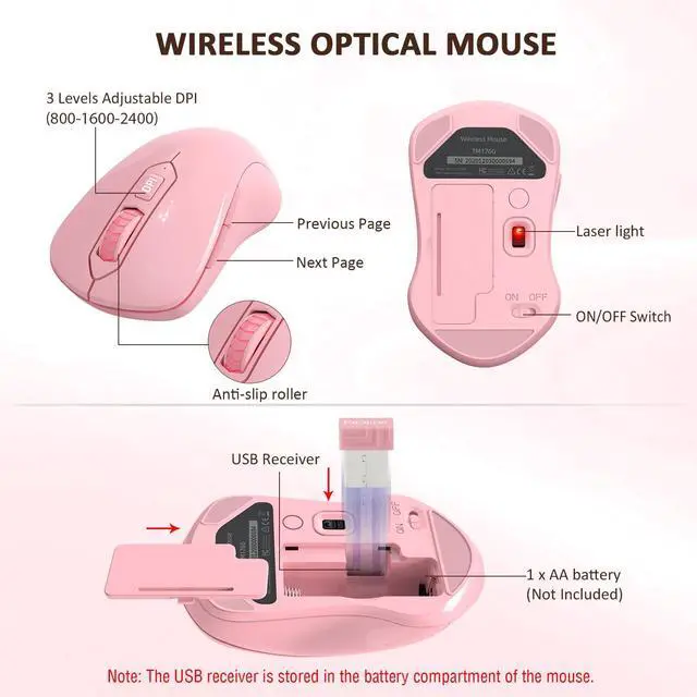 Ergonomic Wireless Keyboard and Mouse ComboEDJO Full-sized wireless keyboard is ergonomically designed with Palm Rest and folding holder that can keep it at an optimum slopeprevent your wrists from hurting while long sessions of typing. Keyboard is also designed with anti-slide pads so it will stay in place when you're typing quickly. NOTE: THE USB RECEIVER IS INSERTED IN THE BATTERY COMPARTMENT OF THE MOUSE, YOU CAN FIND IT WHEN OPEN THE MOUSE BATTERY COVER.