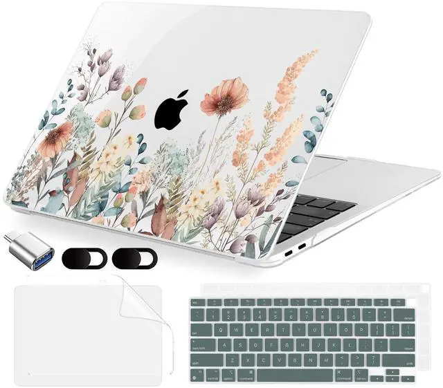 MecBevia Compatible with MacBook Air 13.3 inch Case 2021-2018 Release A2337 M1 A2179 A1932 Touch ID, Plastic Hard Shell&Keyboard Cover&Screen Protector&Webcam Cover&Type-C Adapter, Abstract Flower