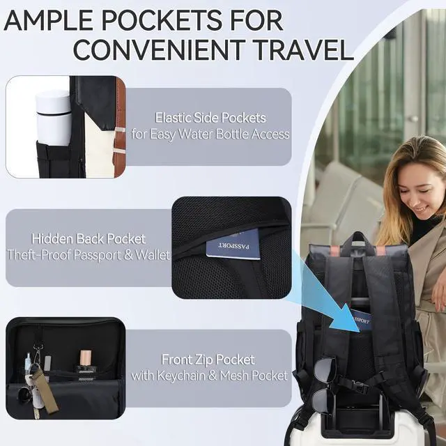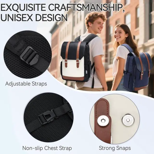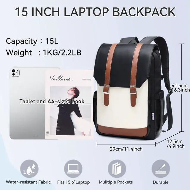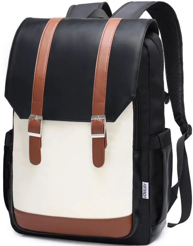 15.6 inch Stylish Laptop Backpack The VONXURY women backpack is made of water resistant and durable polyester fabric and supple faux leather. All the heavy-duty buttons and stitching have held firm, which are made this casual backpack sturdy enough to last for years. The pads of the back and the adjustable reinforced shoulder straps are breathable and soft. THIS ITEM IS NOT INTENDED FOR USE BY CHILDREN 12 AND UNDER.