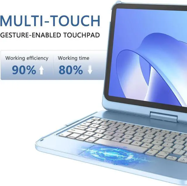 Touch Keyboard for iPad 10th Generation 2022: For iPad 10th generation keyboard case with integrated multi-touch trackpad, with plentiful trackpad gestures, you can turn it into a highly performant and easy to use laptop! Like swipe and scroll to navigate even faster, that opens up new ways to work with ipad. Delivering a comfortable user experience while allowing you to click and swipe through content effortlessly