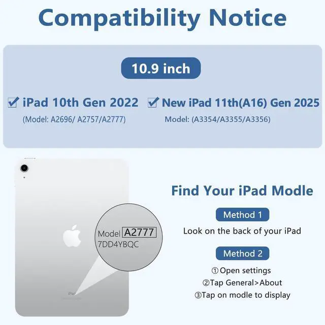 TaIYanG for iPad 11th/10th Generation Case with Keyboard (10.9", 2025/2022): Only Compatible with iPad 11th(A16) and 10th Gen 10.9inch 2025/2022 (Model Number: A3354; A3355; A3356; A2696; A2757; A2777). Please kindly check model before purchasing