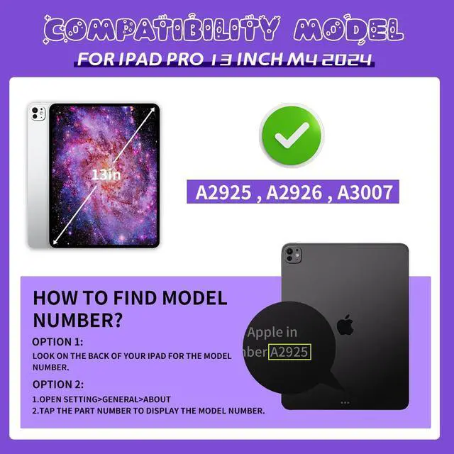 BILLISGOVA's 13-inch iPad case is compatible with the iPad Pro 13-inch (M4), released in 2024, models A2925, A2926, and A3007.