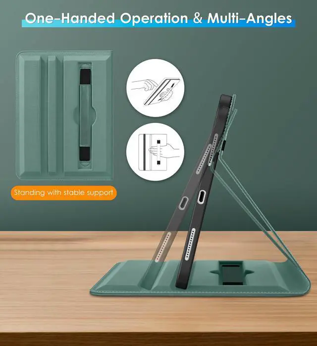 Internal embedded 360-degree rotating design, flexible rotation to any angle for comfortable watching movies or typing. Built-in leather hand strap (one-handed operation)