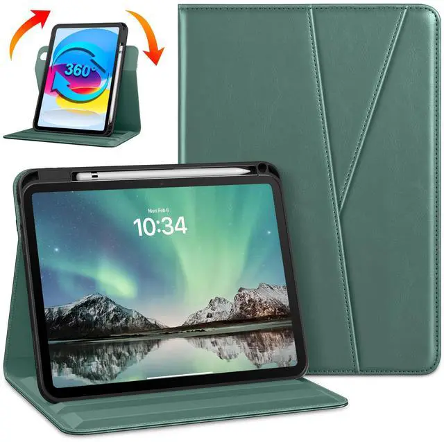 DTTO Rotating Case for iPad (A16) 11th Generation 11 Inch 2025, iPad 10th Generation 10.9 Inch 2022, 360 Degree Swiveling Premium Leather Folio Stand Cover with Pencil Holder, Midnight Green