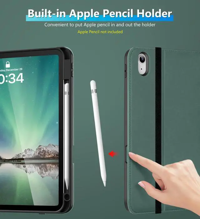 Built-in pencil holder, Pencil holder securely carries and protects your Apple Pencil (USB-C) or Apple Pencil 1st Gen wherever you go. Please Note: Apple pencil not included