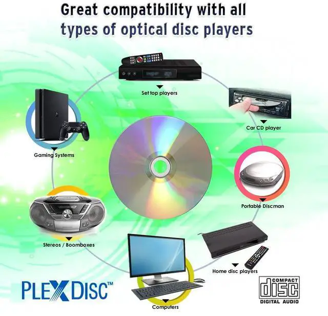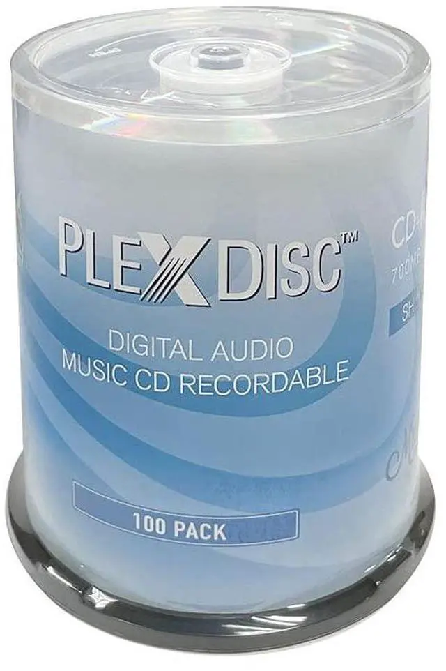 Description PlexDisc Digital Audio recordable CD media is made in Taiwan for superior quality and performance. They are able to record all digital content, including data, games, and more. However, these Digital Audio CD-R are perfect for recording audio. The PlexDisc Digital Audio recordable CD media is affordable and works in a wider array of duplication and recording devices compared to cheaper, less reliable media options. Plus, the Plexdisc digital audio cd-r shiny top media comes in a 100 piece cake box, for hassle free packaging without concern for shipping damage.