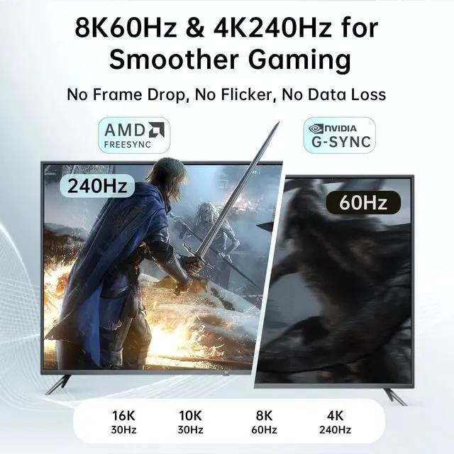Optimal Choice for Gaming EnthusiastsDisplay Port Cable 2.1 Experience vivid, lifelike colors, enhanced contrast, and realism with Dynamic HDR support, also supports UHBR10, DSC1.2a, 3D, HDR, FEC, and FreeSync necessary for gaming G-Sync. You can easily connect multiple monitors using Multi-Stream Transport (MST). Variable Refresh Rate (VRR) and Automatic Low Latency Mode (ALLM) bring you a smoother gaming experience, especially in FPS, AAA, and MOBA games.