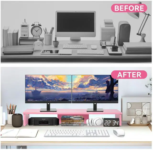 Multifunctional Use: More than just a TV riser, this tabletop stand can also be used as a dual monitor stand, printer stand, cosmetics organizer, or even a pet feeding station. Its ideal for any situation where you need to elevate items