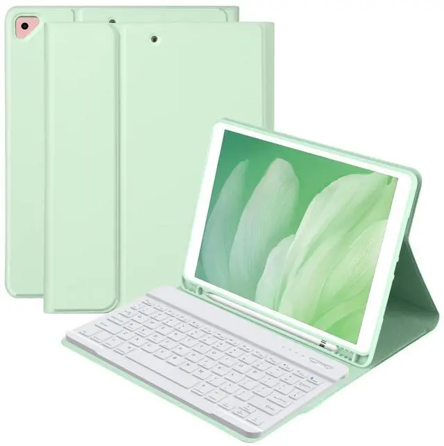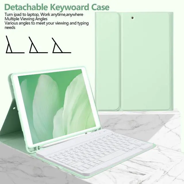 BQSS for iPad 9th Generation Case with Keyboard 10.2 inch, Wireless Detachable Keyboard for iPad 9th/8th/7th, for iPad Air 3rd Gen/Pro 10.5 inch Flip Stand Case with Built-in Pencil Holder (Green)