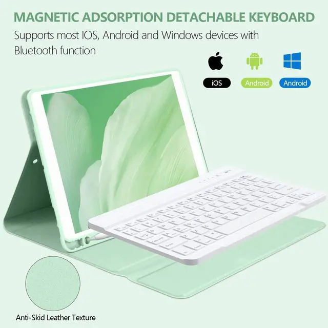 Auto Sleep & Wake Functionfor iPad keyboard case 10.2 8th is adopted an auto sleep/wake function. It allows your tablet automatically get into sleep mode when you close case and automatically wake up again when you open the case, which is great for power saving. To achieve the maximum effect of auto sleep wake function, please remove the magnetic wireless keyboard, since the keyboard with iron can reduce the mutual attraction between the magnets.