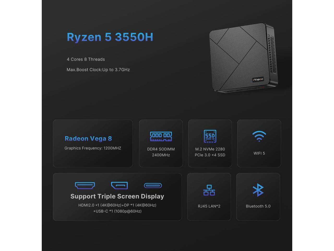 - Upgraded Ryzen 5 Mini PCMAGICNUC AS1 Mini PC is equipped with the Ryzen 5 3550H processor (4C/8T, up to 3.7GHz).Mini desktop computers provide a smooth, fast experience in multitasking such as running multiple programs simultaneously, background updates, multi-tab browsing, daily office operations, and web loading.