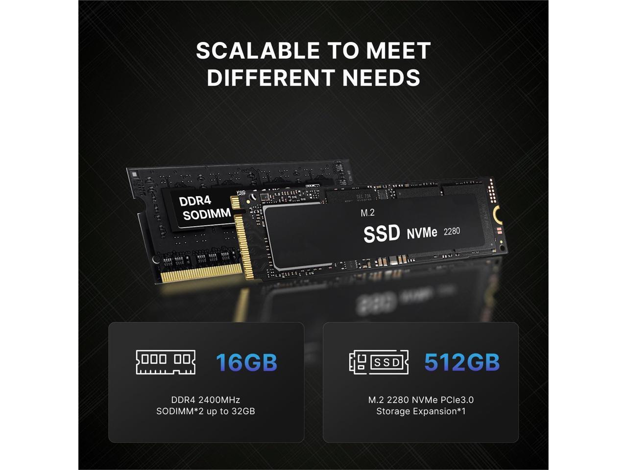 - 16GB DDR4 & 512GB SSDMicro computer built-in dual-channel DDR4 16GB RAM, reserved 1 empty slot (up to 32GB), can easily deal with multi-task office, far more than 8GB, say no to lack of memory caused by stutter, flash back.Mini desktop computer bu