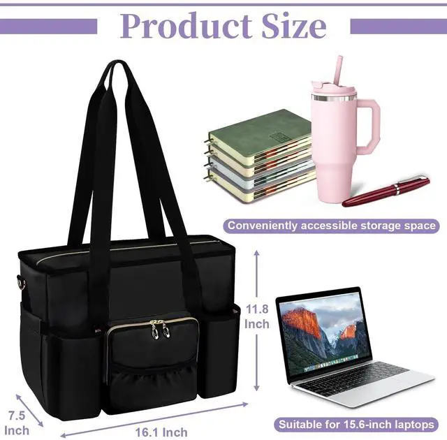 Wigojoy Nurse Bag, Work Bags with 15.6-inch Laptop Compartment, Teacher bag with Large Cup Holder, Nursing Tote Bag with Insulated Pocket for Nurses, Teachers, Students, and Professionals, Black