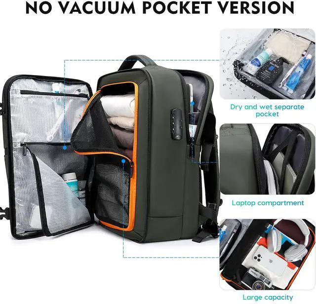 Pocket version:The travel backpack does not come with a vacuum pocket version, so if you need a larger space, please choose the vacuum pocket version reasonably.The laptop backpack is made of Oxford cloth material, which is not only waterproof but also scratch resistant.