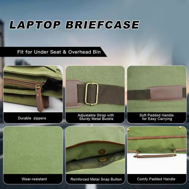 Vintage Men's Messenger Bag Laptop Briefcase Canvas Satchel Bag for Work, Travel & Business Multi-Pocket Crossbody Bag with Adjustable Strap Gift for Him