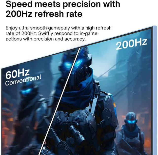 Unleash the Power of 200Hz Refresh Rate - Experience unparalleled smoothness and responsiveness with a blistering 200Hz refresh rate. Every frame is rendered flawlessly, eliminating motion blur and lag for pixel-perfect precision in even the most intense gameplay scenarios. React faster, aim truer, and dominate your opponents.