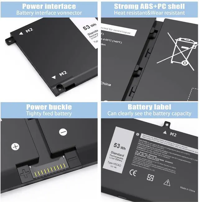 New 53Wh H5CKD Battery Replacement for Dell Inspiron 5400 5406 7405 7300 7306 7500 7506 2-in-1 Silver 5300 5301 5401 5402 5408 5409 5501 5502 5508 5509 Series Latitude 3410 3510 Vostro 5300 5301