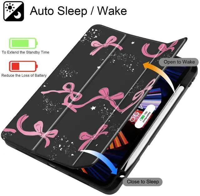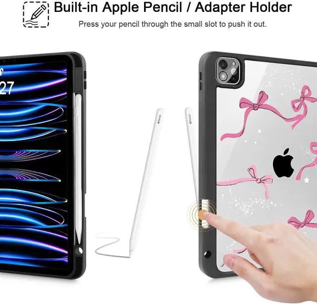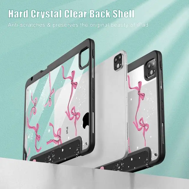 Tuiklol for iPad Pro 11 Inch Case M2 2022 Generation 4th -Built-in Pencil Holder Shockproof Cover Clear Transparent Back Shell Fit for iPad 11 2021 2020 2018 Gen 3rd/2nd/1st for Kid, Bow-Black