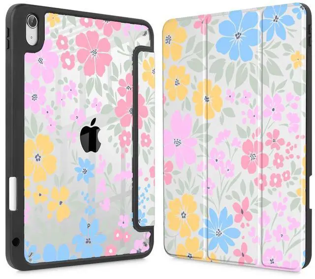 May Chen Case for iPad Air 11 (M3 2025 / M2 2024) 7th 6th, iPad Air 4 & 5 10.9 Inch 5th 4th (2022/2020) - Pencel Holder + Auto Sleep/Wake, Transparent Shockproof Back Cover, Wild Flowers