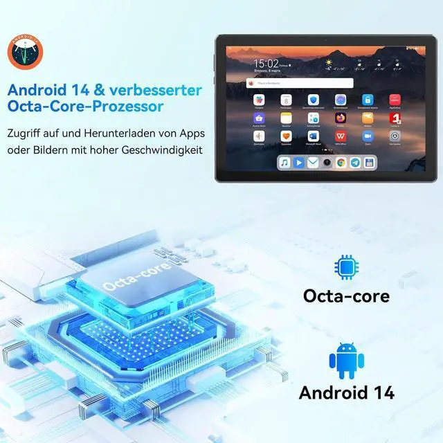 Android 14 & Octa-Core & 2.0 GHZ: The tablet is equipped with the latest Android 14 system. Android 14 Tablet improves user productivity while improving performance, data protection, security, and user experience personalization. And the Android tablet is equipped with the most stable octa-core processor with a maximum clock frequency of 2.0 GHz, which improves the speed of program execution and mobility while surfing the Internet and provides a faster user experience.