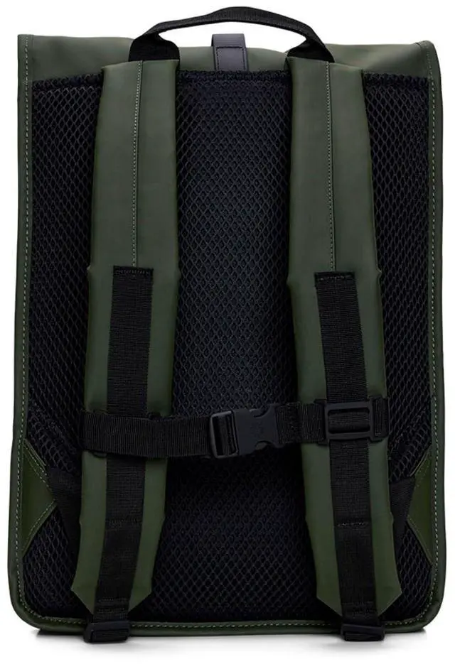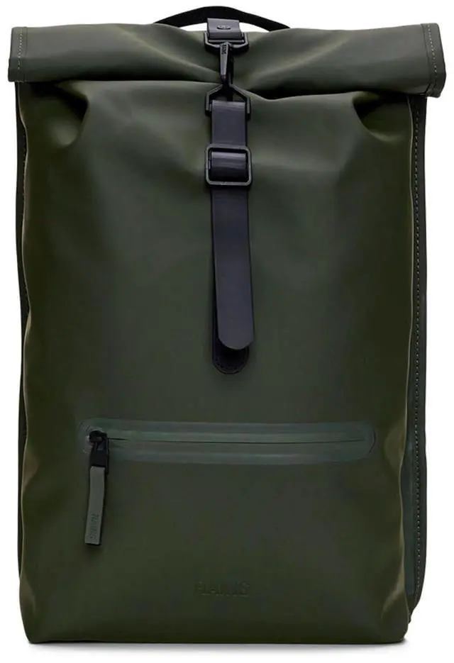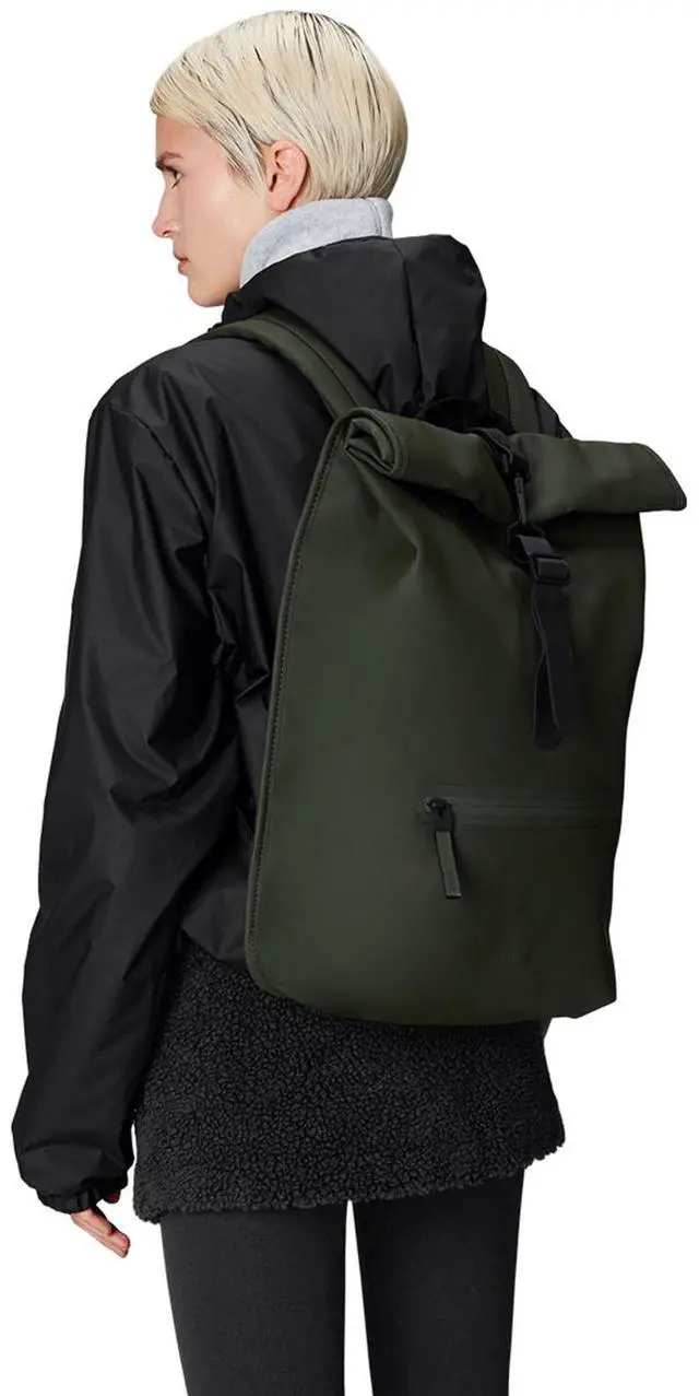 RAINS Rolltop Rucksack Green Waterproof Rolltop Backpack Water Resistant Water Repellent Commuter Travel Pack Urban Minimalist Design 2 Year Warranty
