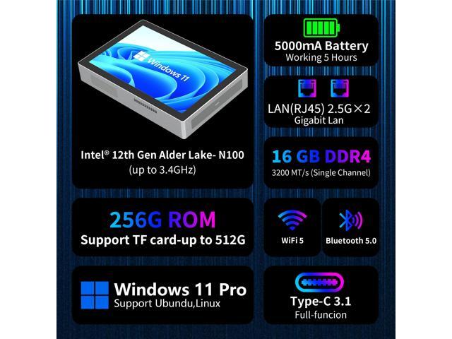 HEIGAOLA Mini PC 12th Gen N100 Windows 11 Pro 7" Screen 16GB RAM 256GB ROM Mini PC with Screen USB-C 4G Data Mini Computer WiFi 5 BT 5.0 4K Display Dual 2.5G LAN Desktop Computer