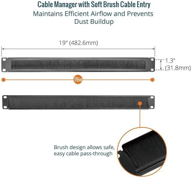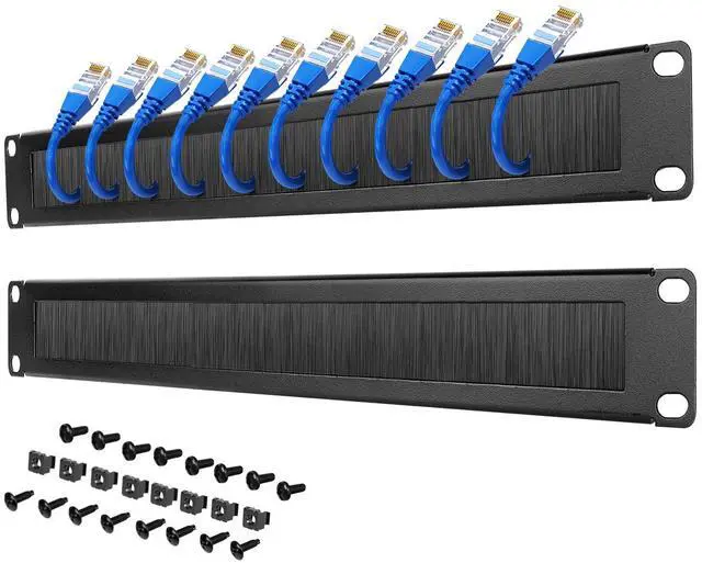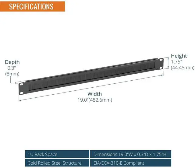 Universal 19" Fit:W 19 x H 1.7 x D 0.3 inch,this 1u rack mount cable management panel with brush is designed to fit 19in server racks and network cabinets
