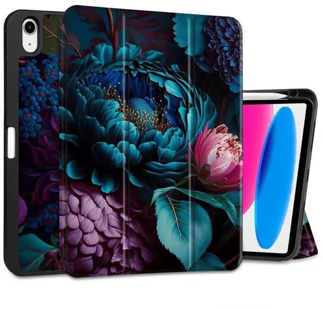 MEEgoodo Case for iPad A16 11th Generation 11 inch 2025/iPad 10th Generation 10.9 inch 2022,Tablet Cover with Trifold Stand + Pencil Holder + Auto Wake/Sleep + TPU Back Cover, Beautiful Fantasy Flower