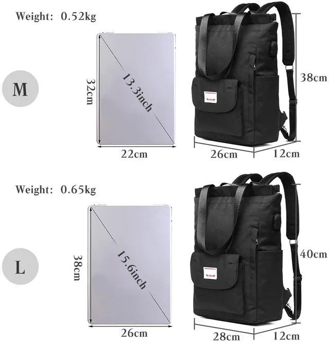 Large Capacity: Size: 28x12x40cm (Length x Width x Height). Weight: 0.65 kg. With 1main pocket, 1 shockproof laptop compartment (up to 15.6 inch), 1 inner zipper pocket and 2 inner patch pocket, 2 side pockets, 1 anti theft zipper side pocket, 1 pocket on luggage strap and 1 flexible and practical front pocket. Large, multi-pocket backpack ensures that your personal belongings are well-organized and easily accessible when needed.