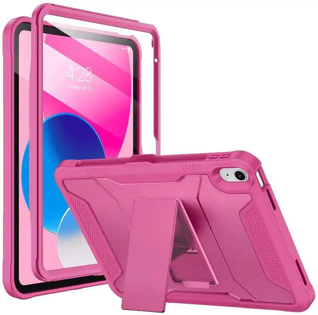 Soke Case for iPad (A16) 11th Generation 11-inch 2025, iPad 10th Generation 10.9-inch 2022, with Built-in Screen Protector and Kickstand, Rugged Full Body Protective Cover - Hot Pink
