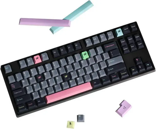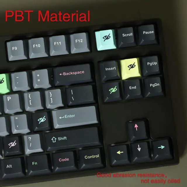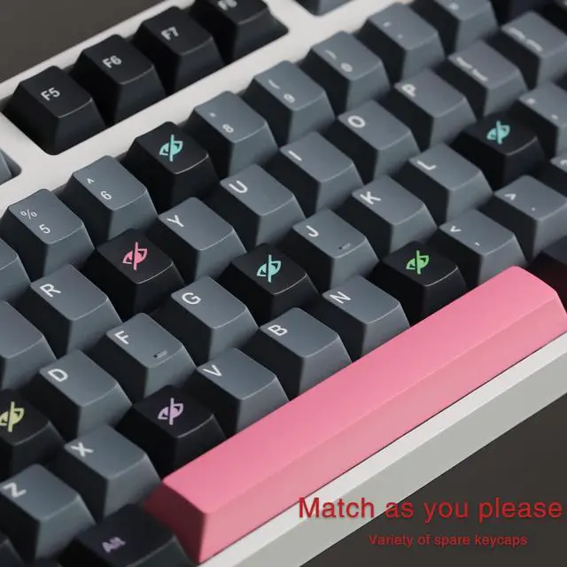Features: Universal cross hole, easy to install, using floating technology characters opaque keycap technology, the surface feels particularly smooth, non-fading and more long-lasting, using injection molding process and waterproof and dustproof design, adapt to standard 61/87/104/ 108 series mechanical keyboard, smooth and delicate touch, characters are not easy to fade, more non-slip, not easy to oil, wear resistance is higher than ordinary keycaps, creating a more comfortable feel