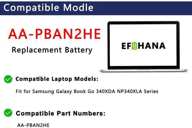 EFOHANA AA-PBAN2HE Laptop Battery Replacement for Samsung Galaxy Book Go 340XDA XE340XDA-KA3 NP340XLA-KA4US XE340XDA-KA1US NP340XLA-KA4US NP340XLA-KA12US Series 7.7V 41Wh 5320mAh
