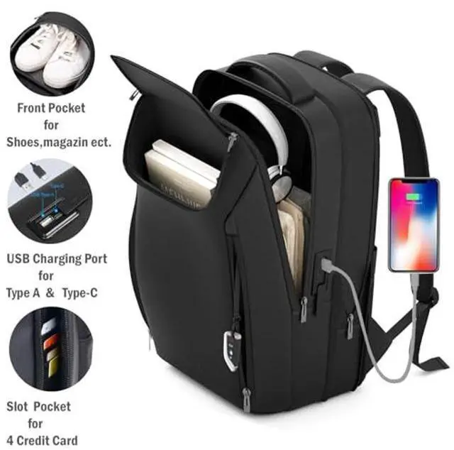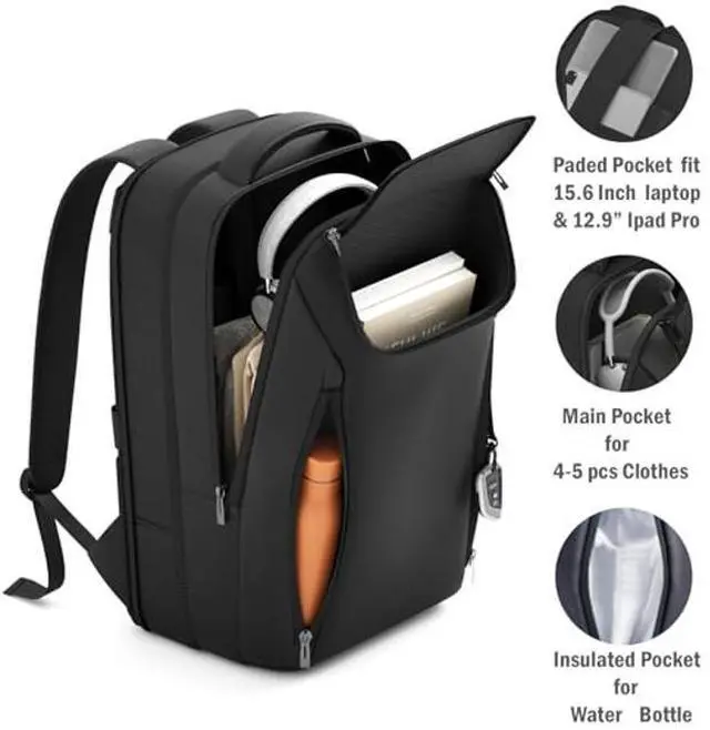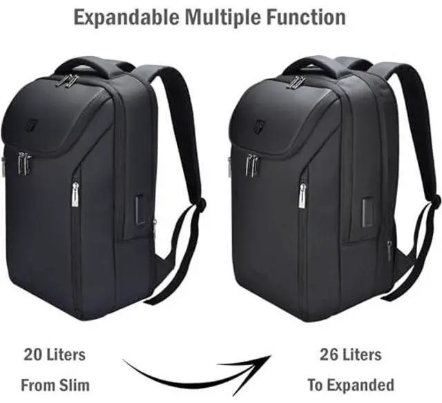 Expandable Capacity Business Backpack with Laptop Compartment: This Travel Backpacks transforms from a sleek 20-liter work backpack to a spacious 26-liter large backpack, providing full access to the interior for all your essentials.