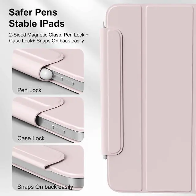 JKSML Case for iPad (A16) 11th/10th Gen with Pencil Holder, Ultra-Slim & Light, Strong Magnetic Attachment, Hard Anti-Bend Folio Cover, Trifold Stand for iPad 10.9" (2022)/ 11" (2025)- Pink