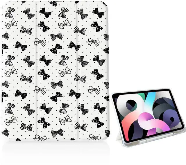 Girly Checkered Bow Tie Case for iPad 11 inch (A16 Chip) 2025 Generation 11th/iPad 10.9 inch 2022 10th Gen with Pencil Holder and Auto Sleep/Wake,White Leather Soft TPU Back Shell Stand Cover