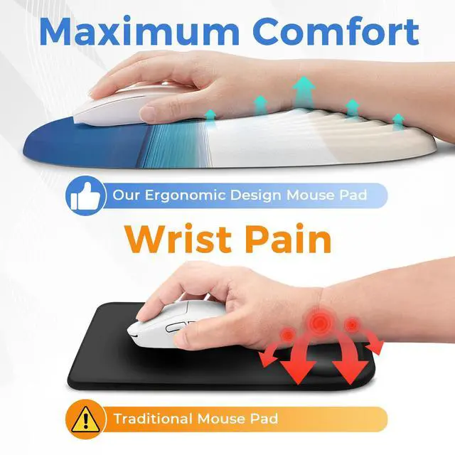 UNIQUE ERGONOMIC DESIGN: This mouse pad was designed with geometric shape. Support your wrist relief perfectly. The ergonomic structure is comfortable for carpal tunnel syndrome.