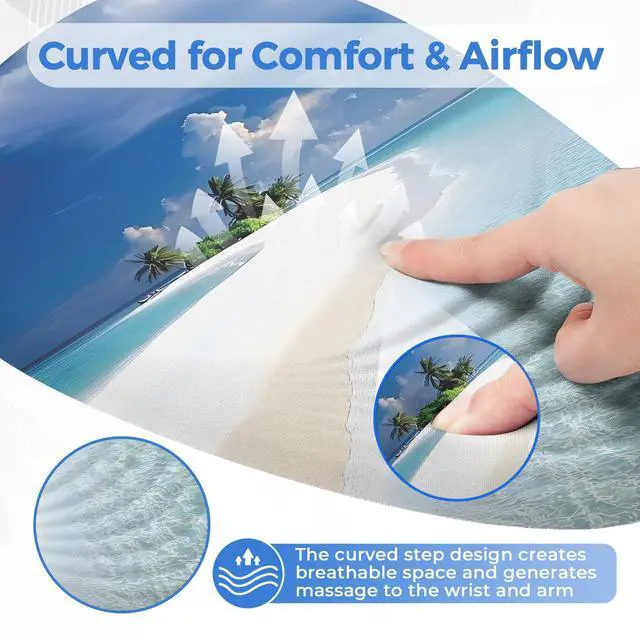 ORIENWEEDA Ergonomic Mouse Pad with Wrist Support, Comfortable Entire Memory Foam, Wrist Pain Relief and Anti-Slip PU Base, Mousepad for Various Computers, Laptop PC (12x8x1.2inch, Maldive Beach)