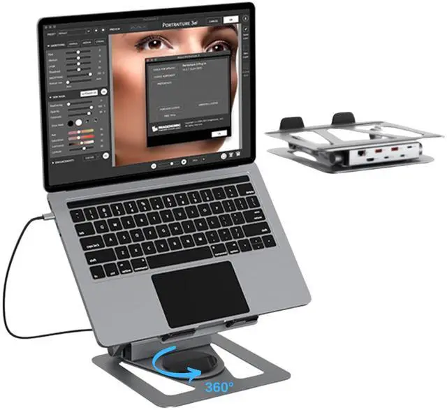 QFI-Cyber Universal 360° Portable Laptop Docking Station, Adjustable Height w/Detachable USB C Hub, 4K HDMI, USB 3.1, RJ45, 100W PD, Suitable for MacBook Pro/Air/Dell/HP/Surface/Lenovo, Plug and Play