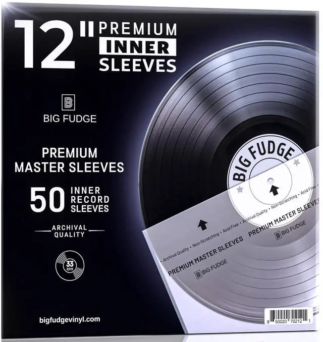 Big Fudge Vinyl Record Sleeves Inner - Clear 3-Ply Inner Sleeves for Vinyl Records 12" - Album Covers with Anti-Static Rice Paper - Acid Free Protective Outer Cover for - White, 50 Pack