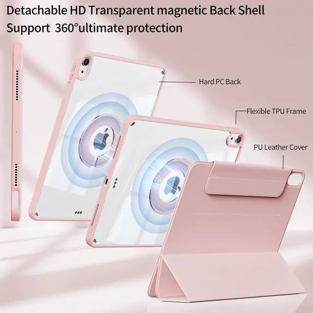 KTGGHG Detachable Case for iPad (A16) 11th Gen 11-Inch 2025 & iPad 10th Generation 10.9-Inch 2022 with Pecil Holder, Protective Hybrid Folio Clear Cover with Hard Back Shell, Auto Wake/Sleep, Pink