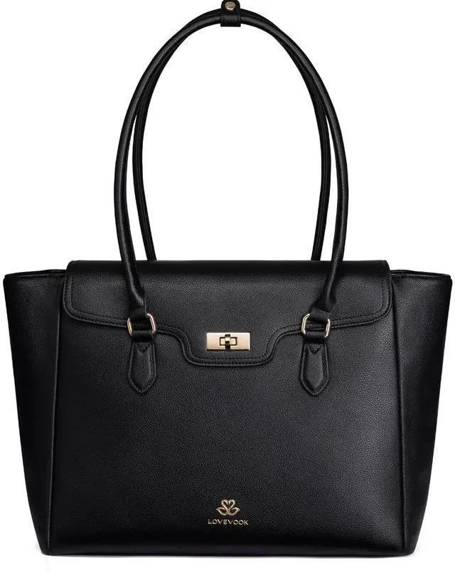 LOVEVOOK Laptop Bag for Women 15.6 Inch Soft Leather Work Bag, Professional Briefcase for Teacher Nurse Business Travel, Large Shoulder Tote Purse with Flap-Design for Office, Everyday Use