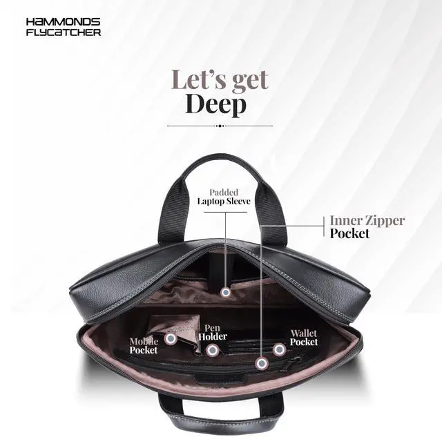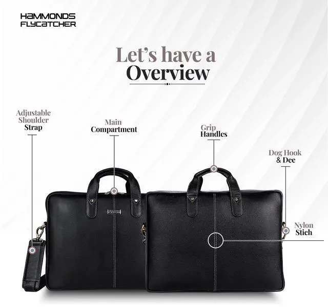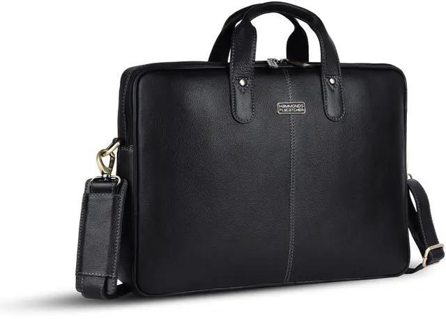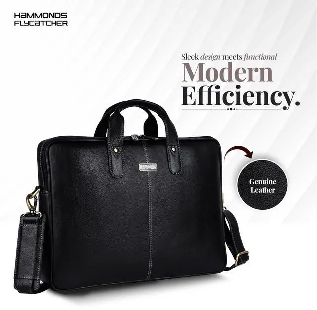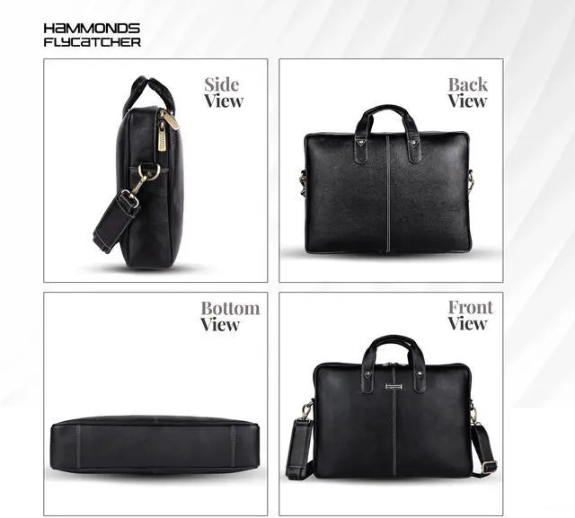 HAMMONDS FLYCATCHER Genuine Leather Laptop Bag for Men with Padded 15.6 Inch Laptop Sleeve, Leather Messenger Bag for Men - Briefcases with Multi Pockets for Office and Travel Use - Classic Black